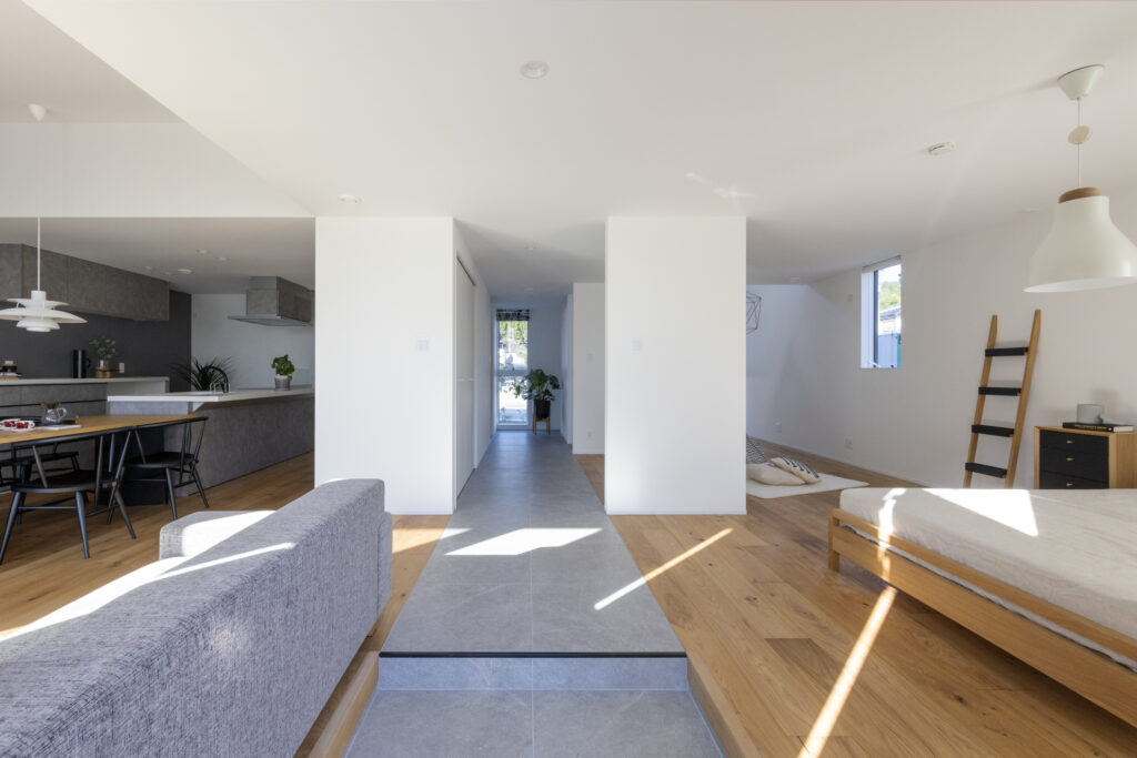 平屋の真価は、数十年後に発揮されます。 車椅子での移動を考慮した幅広の廊下や建具、段差のないフルフラット設計、トイレと寝室の近接配置など、将来を見据えた「ユニバーサルデザイン」を取り入れることで、住み慣れた家で長く自立した生活を送ることが可能になります。